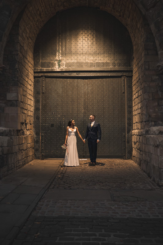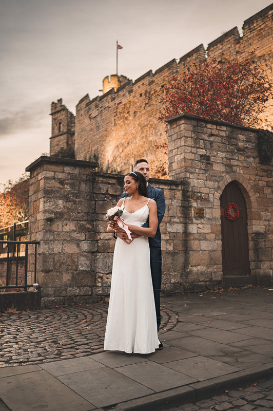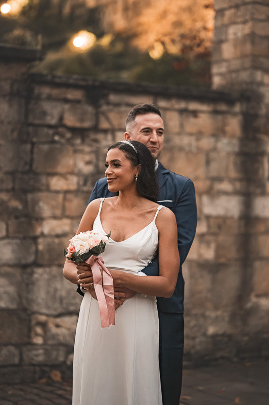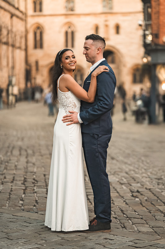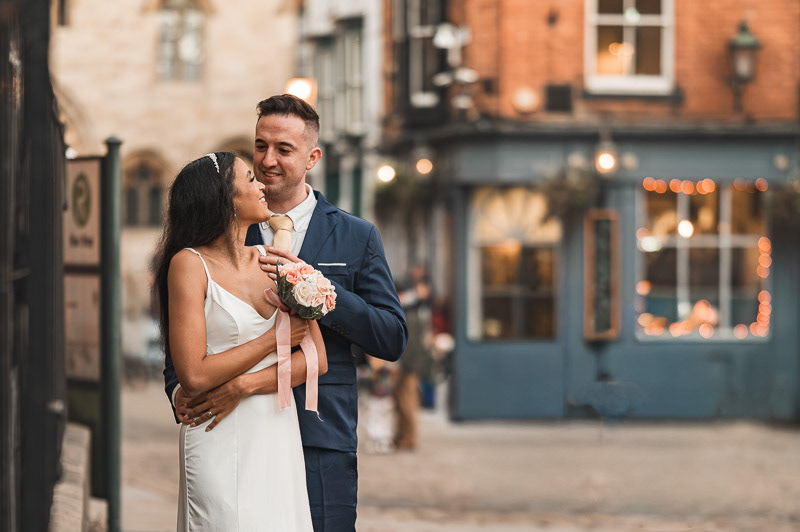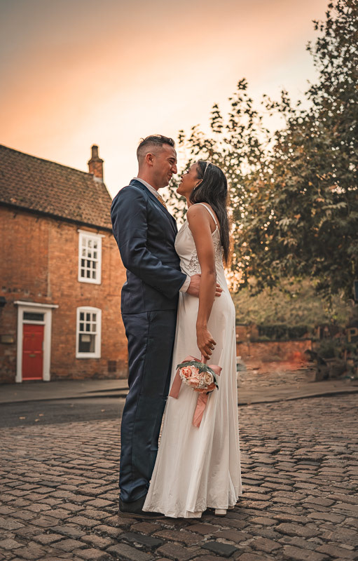 As the evening celebrations began to slow down, Rudo and Jools stepped out for a quiet walk through the historic streets of Lincoln to capture some intimate sunset portraits. The light was beginning to fade, creating a soft, golden glow that perfectly suited the calm and romantic atmosphere of the moment.