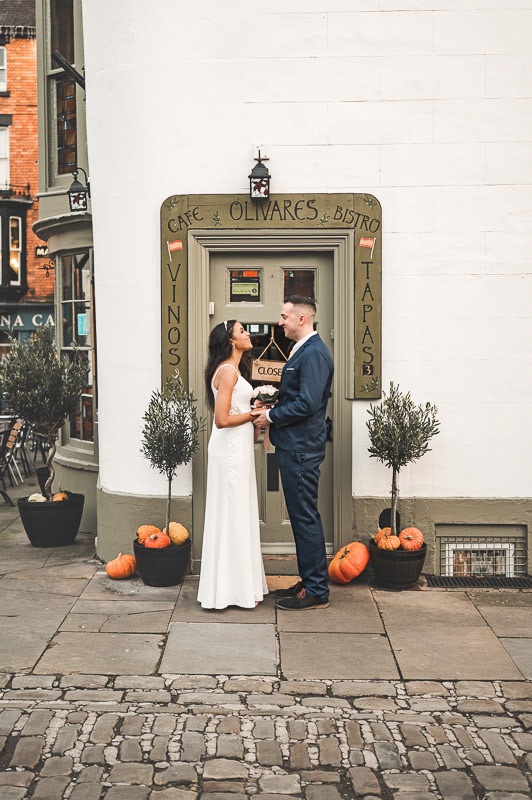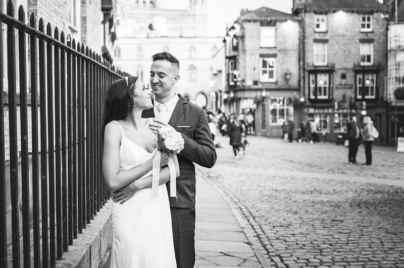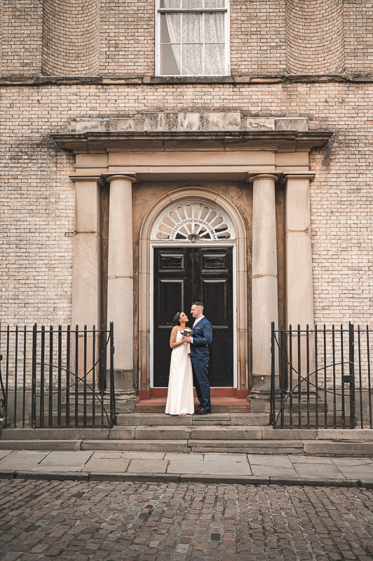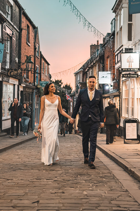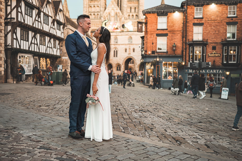 Wandering through the cobbled streets near Lincoln Cathedral and the beautiful area of Bailgate, we took advantage of the final moments of daylight as the sun dipped behind the historic skyline. The warm evening light and centuries-old architecture provided a timeless backdrop for relaxed, natural photographs of the newly married couple.